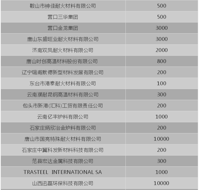 唐山市國(guó)亮特殊耐火材料有限公司 月需求量12000噸