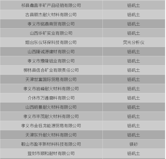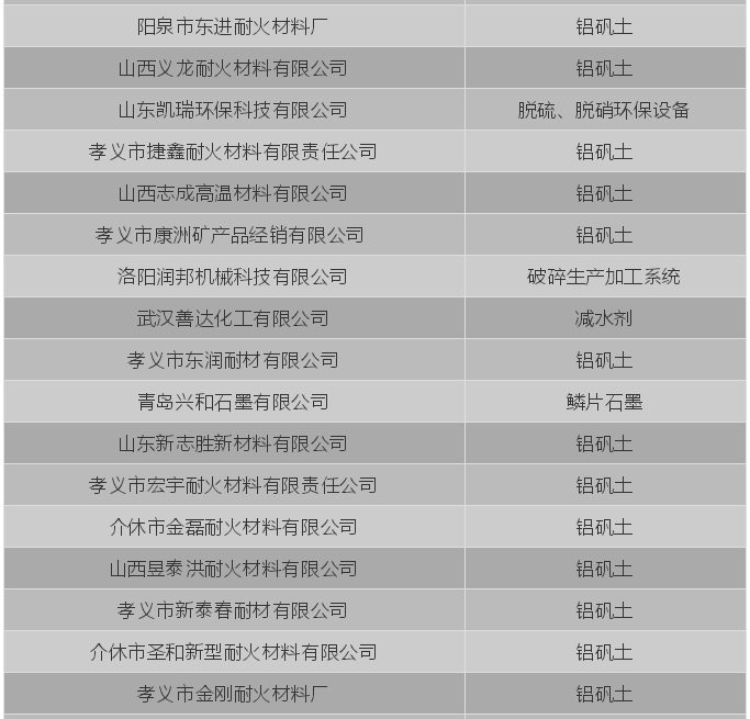 1. 鋁質(zhì)耐火原料:鋁礬土、莫來(lái)石、焦寶石、高嶺土、耐火黏土、白泥、球粘土、藍(lán)晶石、紅柱石、硅線石等原料。