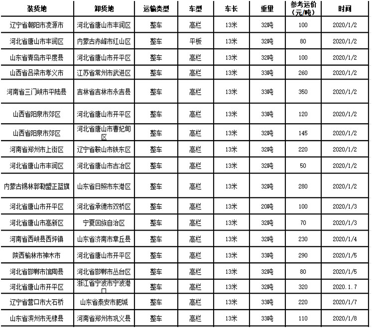 自銀耐聯平臺物流服務正式上線以來,目前已得到眾多交易客戶的廣泛關注和青睞,現陸續(xù)有諸多耐材企業(yè)物流負責人通過銀耐聯平臺物流管理欄目進行運費詢價,并通過平臺實現了物流交易。以下為部分地區(qū)物流交易參考運輸價格匯總表: