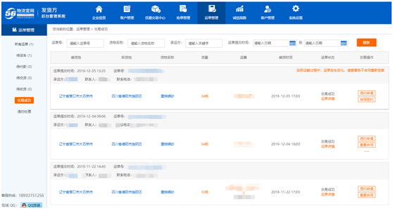 (圖為貨主企業(yè)完成運單統(tǒng)計頁面)