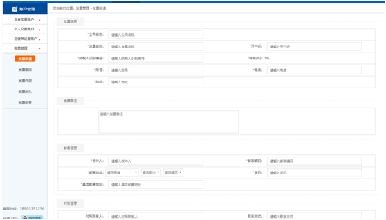 (圖為貨主企業(yè)發(fā)票信息填寫的頁面)