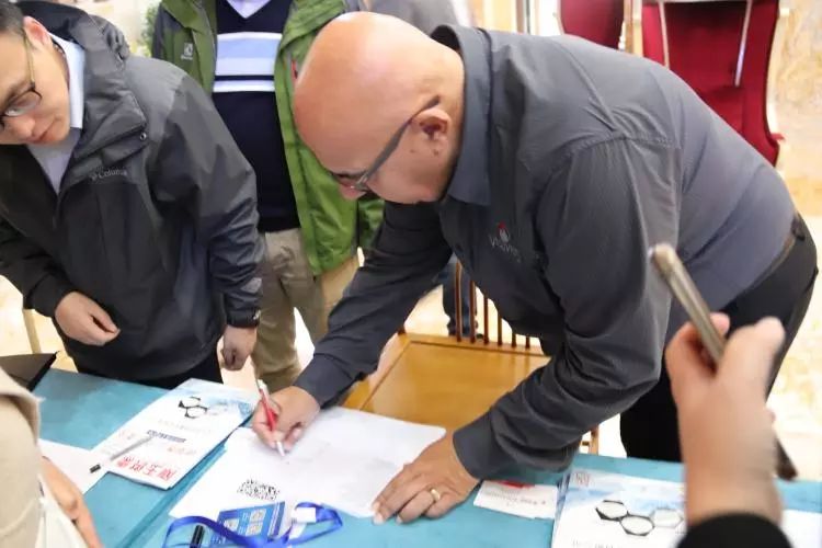 報到處工作人員穿戴整齊,微笑迎接客戶到來。